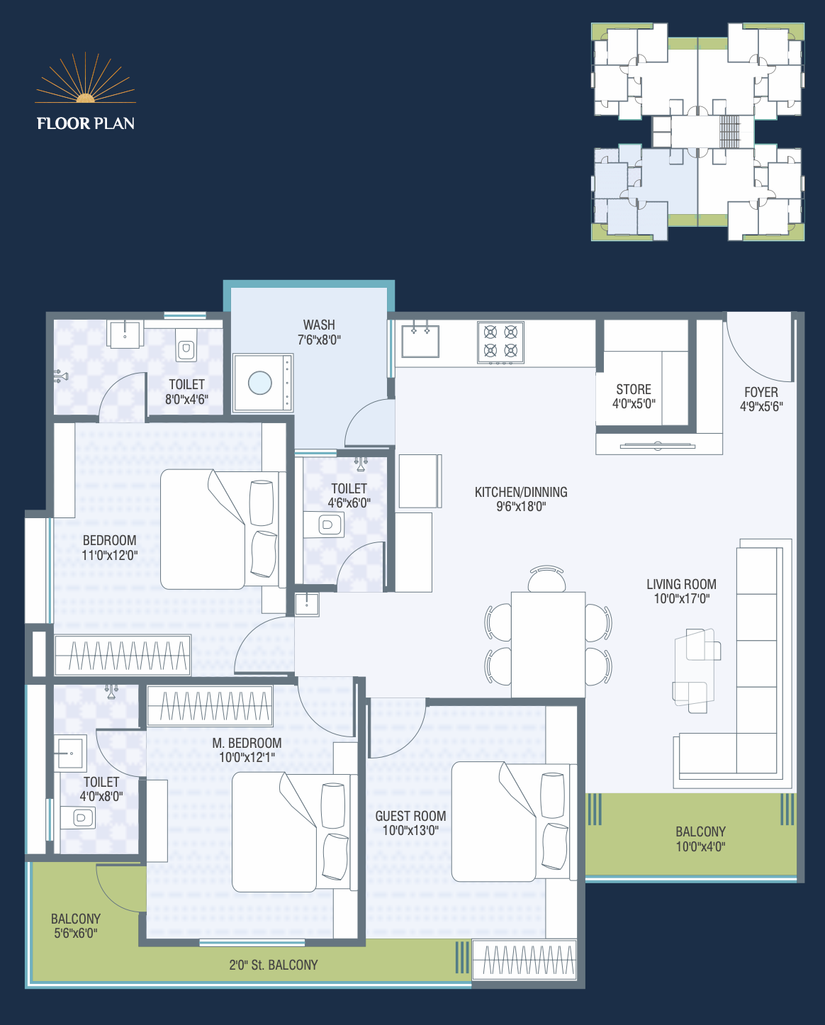 - Dedicated water supply points for kitchen, bathrooms, and utility areas.