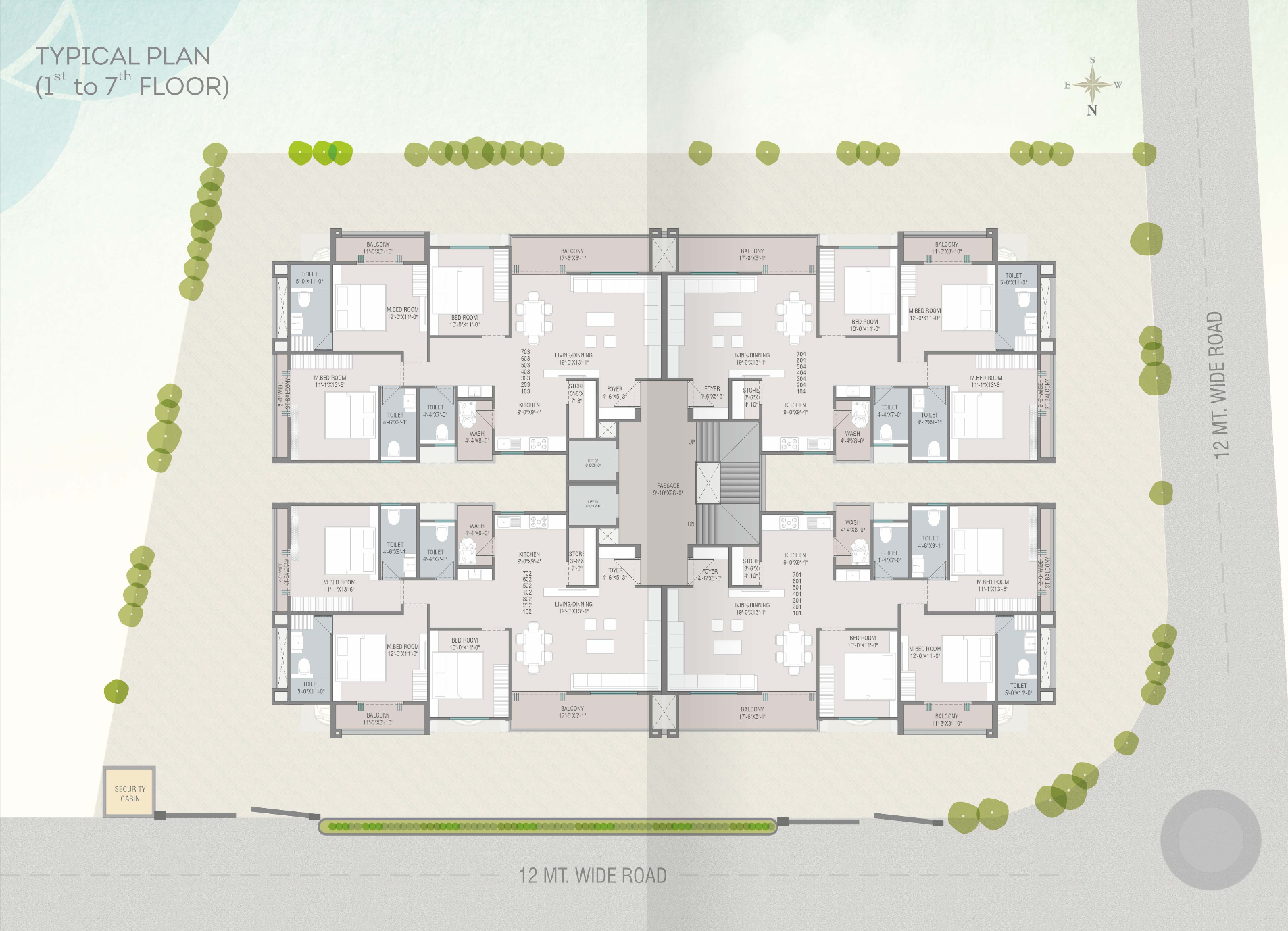 - Vitrified flooring in the living, dining, kitchen, and bedrooms.